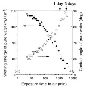 河合研究室の接触角計を用いて、物質表面の洗浄度や汚染度について示しました。