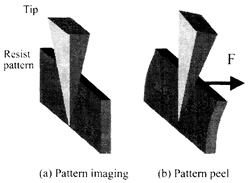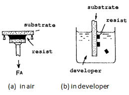 | [abstract] The variation of residual strain in photoresist thin films can be detected by a strain gauge with high sensitivity. The adhesion of resist micropattern during drying after water rinse is studied in terms of the residual strain variation. The residual strain of a resist film varies markedly as water is evaporated from the resist surface. In order to improve the resist adhesion, it is important to decrease the residual strain during the drying process. KEYWORDS : Adhesion, residual strain, photoresist, LSI, lithography, pattern development, spin drying, evaporation |