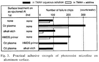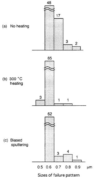 Fig.6 Histgram of the failure patterns of photoresist on the various aluminum stirfaces. | |