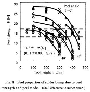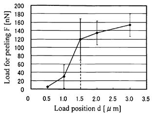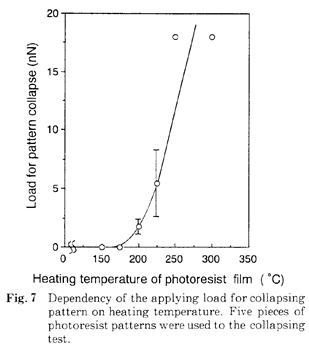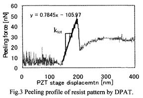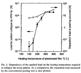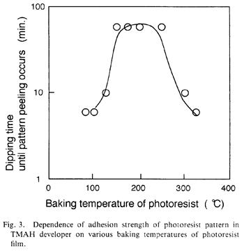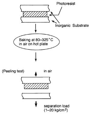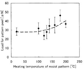 | Fig.1 Schematic flow chart for measuring system of peeling strength. | Fig.2 Dependency of peeling strength on baking temperature of photoresist. |