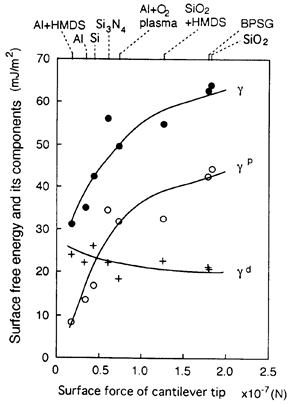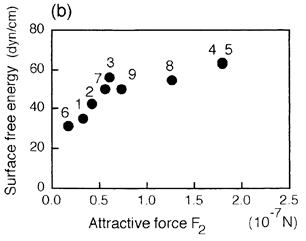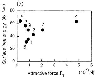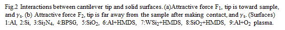 | Fig.1 The construction of atomic force microscopy system. | Fig.3 Correlation between the surface force detected by AFM and the surface free energy components. |