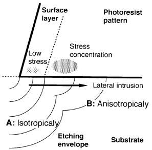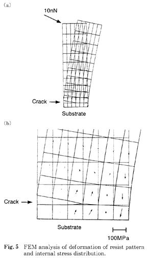 Fig.5 Finite element analysis of stress concentration atthe resist / substrate interface. | |