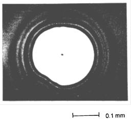 | Fig.2 The photograph of wetting failure of photoresist. The solid core can be observed at the center of the failure area. |