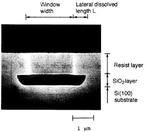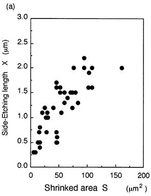 Fig.2 Adhesion of resist/SiO2 system. (a): A plot of side-etching length