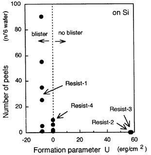| Fig.7 Correlation between number of blisters and formation parameter U (Si substrate). |