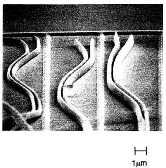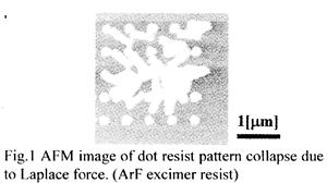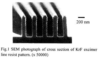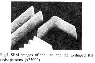 Fig.3 SEM micrograph of typical adhesion failure of resist patterns after drying. (resist-A) |