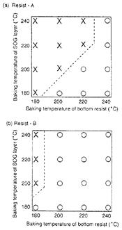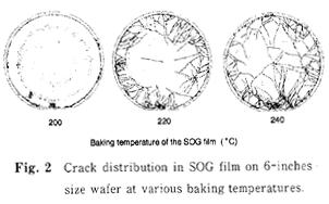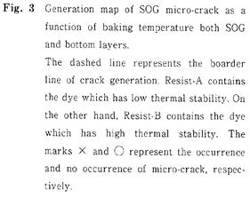 Fig.3 Correlation between number of wetting failure and baking temperature of the organic SOG film. |
