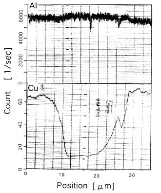 Fig.2 The cross sectional profile of the cracking measured by surface roughness meter. |