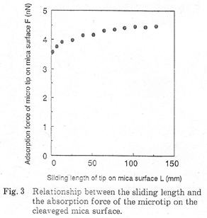 | [abstract] A new application of the interaction phenomenon between tip and surface to practical adhesive behavior is studied. The interactive energy between two films can be estimated from the measured data of attractive force by atomic force microscopy (AFM). The adhesive strength between inorganic materials and polymer is closely related to the estimated value of interactive energy. The adhesive strength can be estimated by using a nondestructive method. Key-words : Atomic force microscopy, Surface force, Adhesion, Elastic energy, Destruction, Photoresist, Cantilever tip |