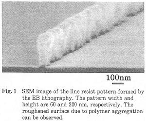 | [abstract] 半導体集積回路 (LSI) の製造技術の中で、フォトレジスト微細パターンの接着技術は今後重要な分野となる。配線材料であるアルミニウム薄膜上のレジストパターンの接着において、アルミニウム薄膜の表面粗さの影響を研究した。三種類の平均粗さ (Ra=2.0, 5.5 11mm) のアルミニウム薄膜において、5.5mmの粗さのものが最も大きい接着力を示した。この結果は表面粗さの増加に伴う二つの要因:( i ) 基板界面付近のレジスト内の応力集中の発生、( ii ) レジストとアルミニウム表面の接触面積の増加で説明できる。 In Large Scale Integrated Circuit (LSI) production, the adhesion control of a photoresist micro pattern to a substrate has become important. Dependency of resist adhesion on surface roughness Ra=5.5 nm among three kinds of surface roughness. This result can be explained by two factors: (i) stress concentration at the interface region. (ii) increase of the contact area between resist and substrate surface, as the surface roughness increases. |