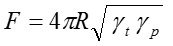 F2=2πR[2{(γtpγsp)1/2+(γtdγsd)1/2}] (2)